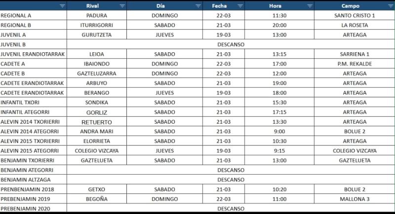 | TXORIERRI JUVENIL | UD La Merced | 29/03 20:00 | V |